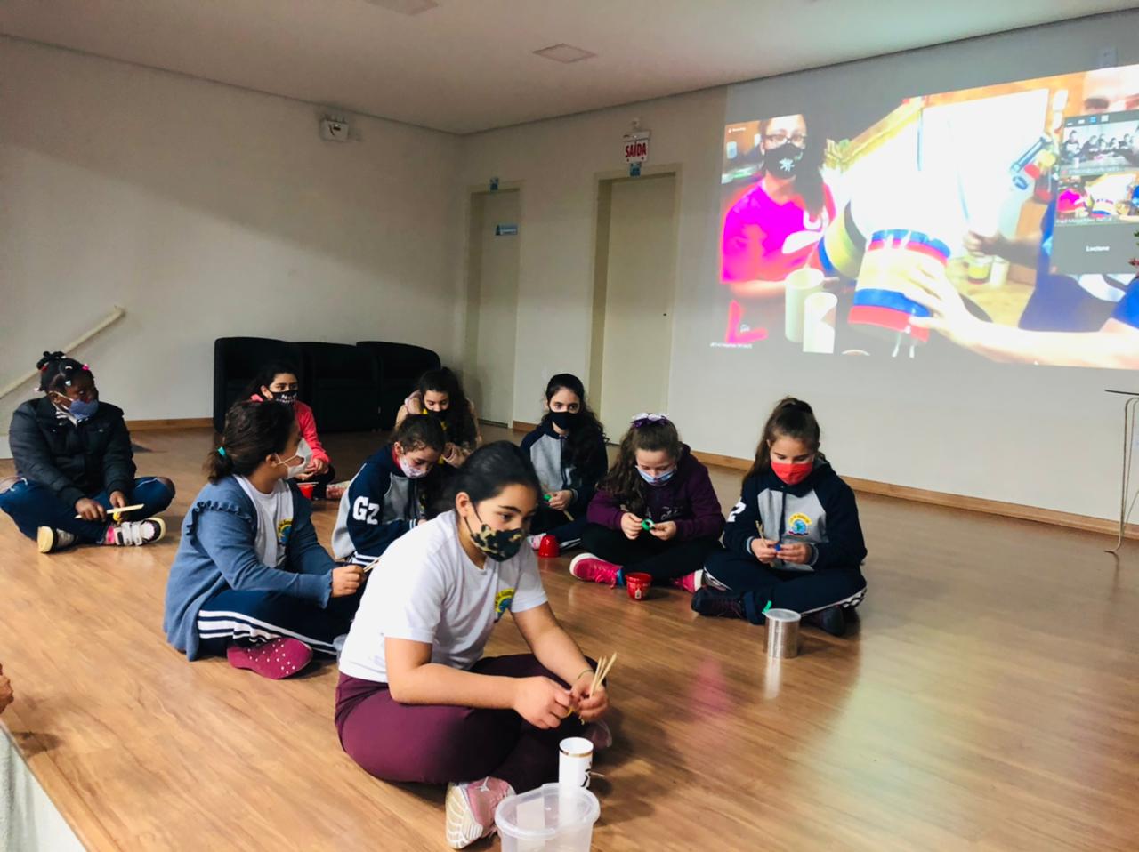 Os professores e alunos são capacitados em oficinas de música instrumental com a construção de instrumentos a partir de embalagens de alimentos recicláveis, como latas de metal e potes plásticos. A oficina é ministrada pelo grupo Patubatê, de Brasília/DF, de forma remota por videoconferência ao vivo.