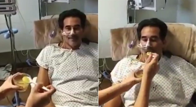 Um vídeo compartilhado por um perfil de fãs, que viralizou nas redes sociais, mostra Szafir se alimentando com a ajuda da mulher, Luhanna Melloni.