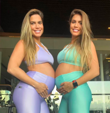Bia (34) e Branca Feres (34) resolveram combinar o look para a academia nesta terça-feira (02/08). Grávidas, as irmãs gêmeas compartilharam vídeos nas redes sociais e exibiram o barrigão com roupas de exercício.