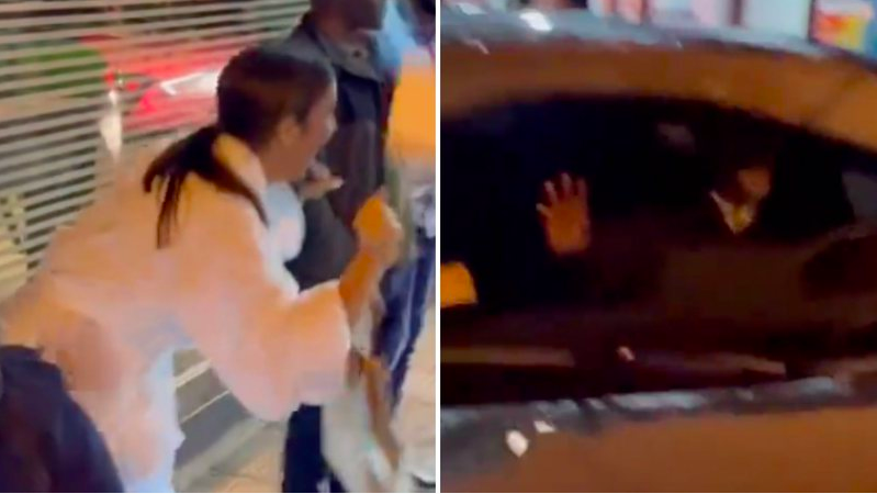 Só que ele não se mostrou muito empolgado. Cansado após um dia difícil, ele não parou o carro e nem abriu o vídeo para dar um "oi" para a cantora. Ela ficou animada do lado de fora.