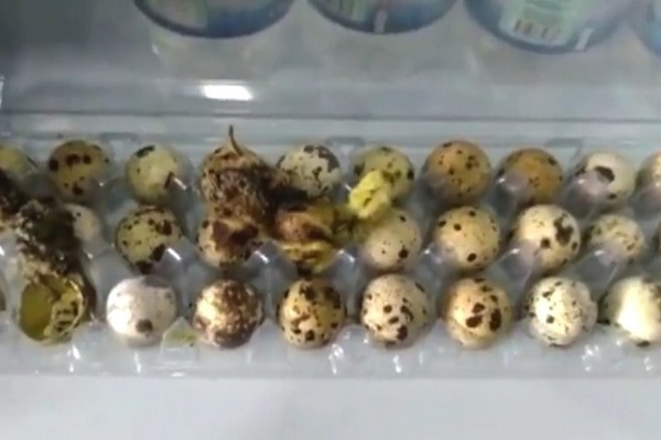 O funcionário do local acionou o gerente após perceber uma movimentação e barulho estranho em uma das prateleiras. Ao abrirem a caixa de ovos, depararam-se com quatro filhotes de codornas.