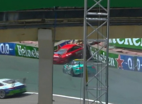 O ator e piloto Caio Castro se envolveu em um acidente logo na largada da Porsche Cup neste domingo (13), em Interlagos.