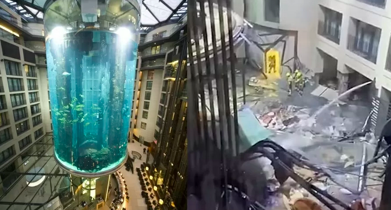 O Aquadom, um enorme aquário instalado no hotel Radisson Blu, na cidade de Berlim, na Alemanha, estourou na manhã desta sexta-feira (16/12).