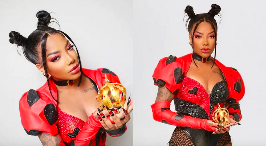 Ludmilla mostrou o look escolhido para colocar seu Fervo da Lud nas ruas de Salvador na noite desta quinta-feira (16/02). Inspirada na personagem Rainha de Copas, da história de Alice no País das Maravilhas, a cantora elegeu um body vermelho e preto cheio de corações, com mangas bufantes, luvas e botas até a coxa combinando, além de uma pequena coroa dourada para finalizar o look.