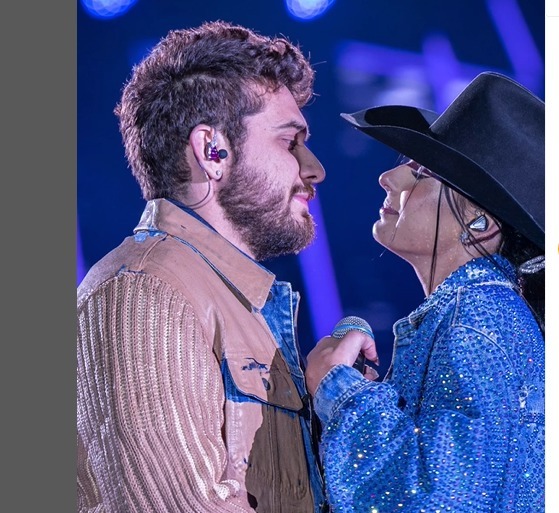 O momento romântico aconteceu durante show na Queima das Fitas, em Coimbra, Portugal, onde os sertanejos estão em turnê.