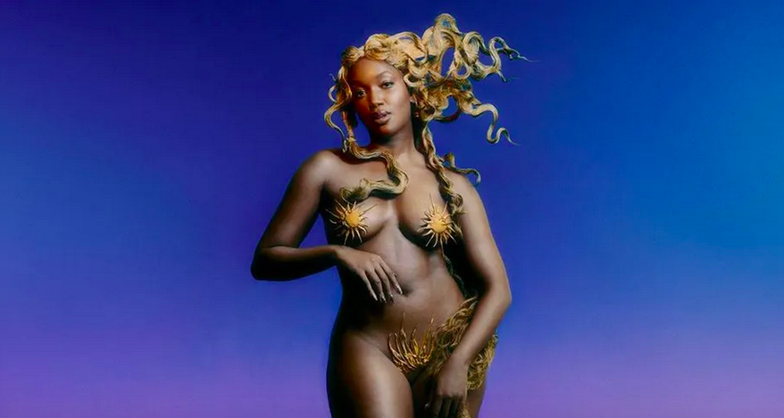 A cantora IZA, de 32 anos, revelou mais uma imagem da campanha de divulgação de seu segundo álbum, Afrodith, no qual ela canta com L7nnon e Russo Passapusso, entre outros. Na foto, postada em suas redes sociais, nesta quarta-feira (02/08), a artista aparece em cima de uma pedra, parcialmente nua e com os cabelos, mais claros, soltos, em um visual que remete a figuras clássicas da arte, como a Vênus de Boticelli.