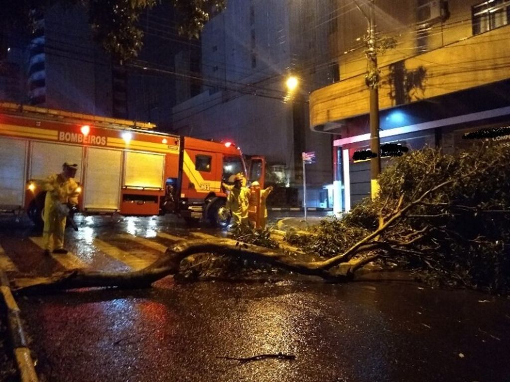 No centro da cidade uma placa foi parcialmente arrancada, devido a força dos ventos. O Corpo de Bombeiros foi acionado e realizou o corte e retirada do galho. No acumulado das últimas seis horas, Chapecó já registrou mais de 27 milímetros de chuva.