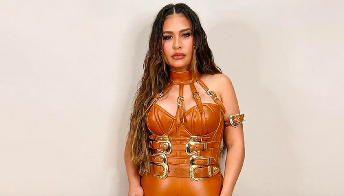 Simone Mendes passou por um aperto com o seu look durante apresentação na Festa do Peão de Barretos 2023 em Barretos, no interior de São Paulo. Enquanto cantava, sentiu que a calça rasgou bem no bumbum e teve que improvisar.