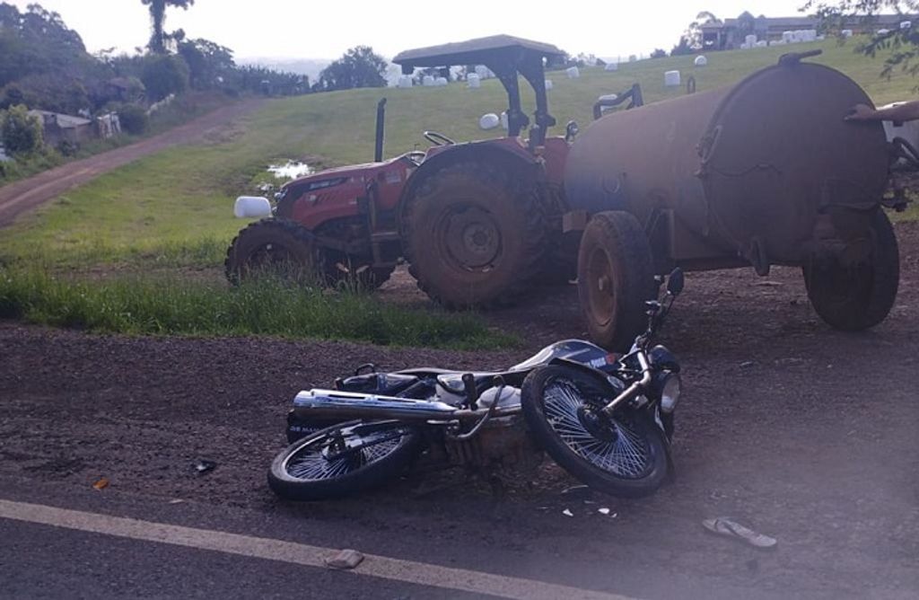 Um motociclista de 33 anos ficou gravemente ferido após colidir em uma máquina agrícola. O acidente aconteceu por volta das 16h20 desta segunda-feira (21), na SC-163 na Linha Aparecida, Interior de Iporã do Oeste, Santa Catarina.