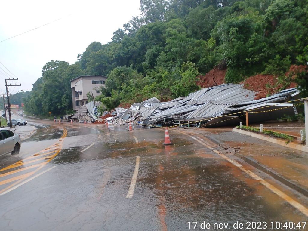 Um deslizamento de terra em Concórdia, registrado na rua Tancredo Neves, região central, atingiu uma empresa de revenda de automóveis, que ficou totalmente destruída. Ninguém estava no local no momento da queda e felizmente não houve registro de vítimas.
