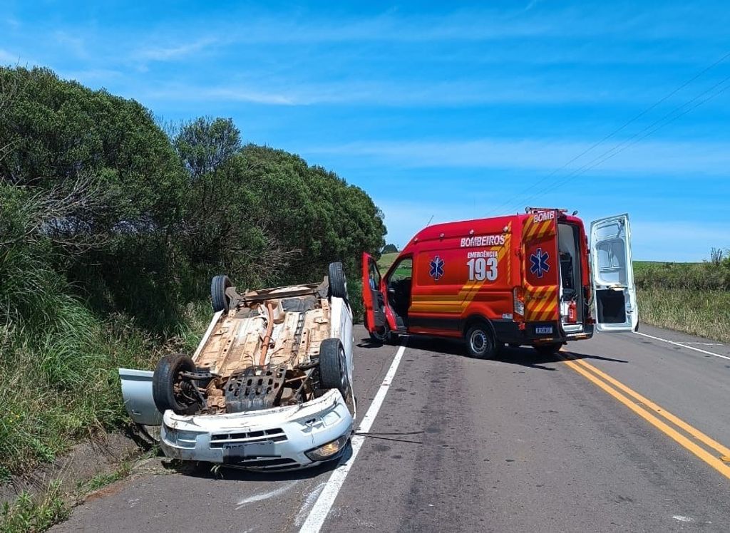 A corporação realizou os primeiros atendimentos no local e depois encaminharam ambos para o Hospital Santa Juliana de Salto Veloso. O veículo ficou aos cuidados da Polícia Militar Rodoviária (PMRv), que também foi acionada e realizou os levantamentos necessários. As causas do capotamento não foram informadas.