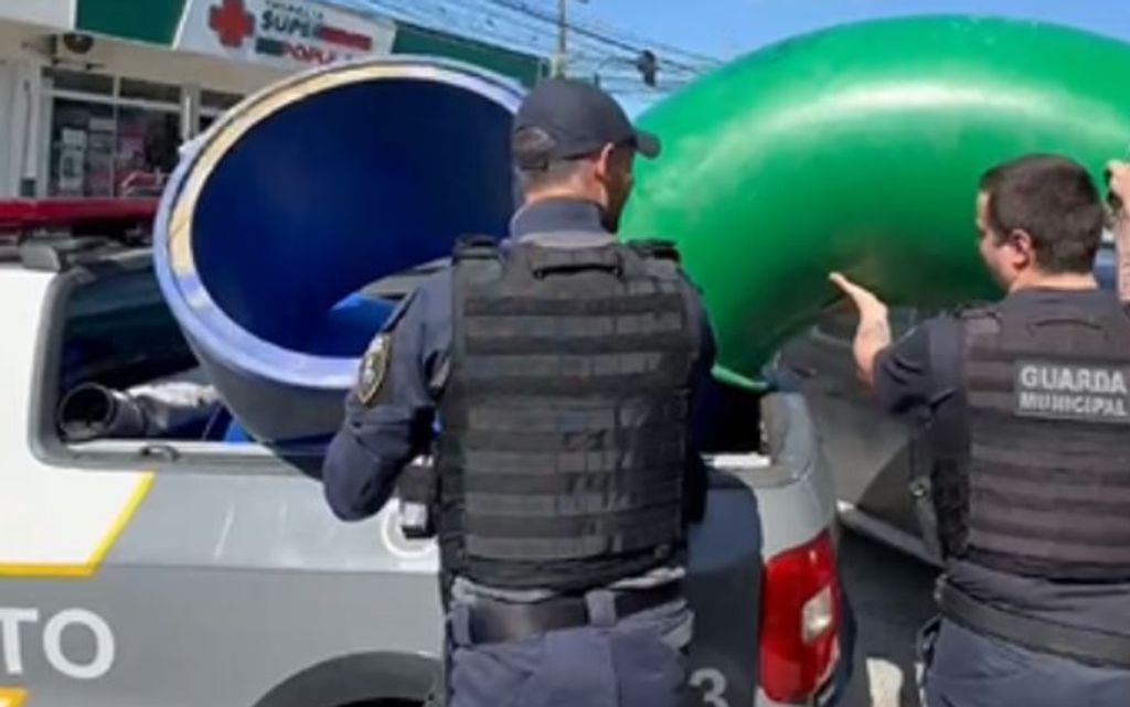 O escorregador foi então desmontado e, juntamente com o veículo utilizado e com os responsáveis pelo estabelecimento, conduzido à Central de Plantão Policial (CPP) para que fossem tomadas as providências cabíveis.