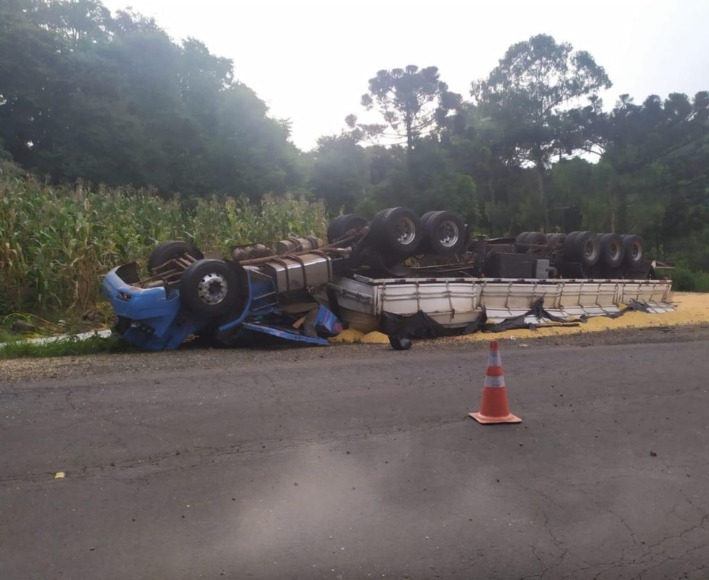 O motorista de uma carreta sofreu ferimentos graves e outras duas pessoas também se feriram após serem atropeladas pelo veículo. O acidente aconteceu por volta das 18h desta segunda-feira, 16, na SC-355, Linha Águas Belas, em Jaborá.