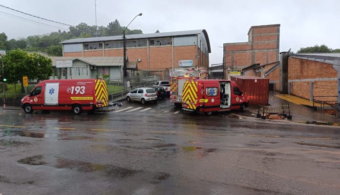 Os Bombeiros Voluntários de Concórdia atenderam a ocorrência de acidente de trabalho na tarde desta quinta-feira (18), no bairro Guilherme Reich.