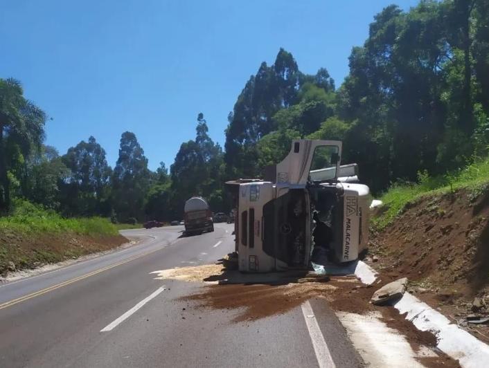Populares acabaram saqueando parte da carga de salmão que era transportada por uma carreta Mercedes-Benz/Axor, que tombou na manhã desta quarta-feira (31) após uma curva na BR-282, em Vargem Bonita. O acidente foi atendido pelos Bombeiros por volta das 9h30min no local conhecido como “asfalto quebrado”.