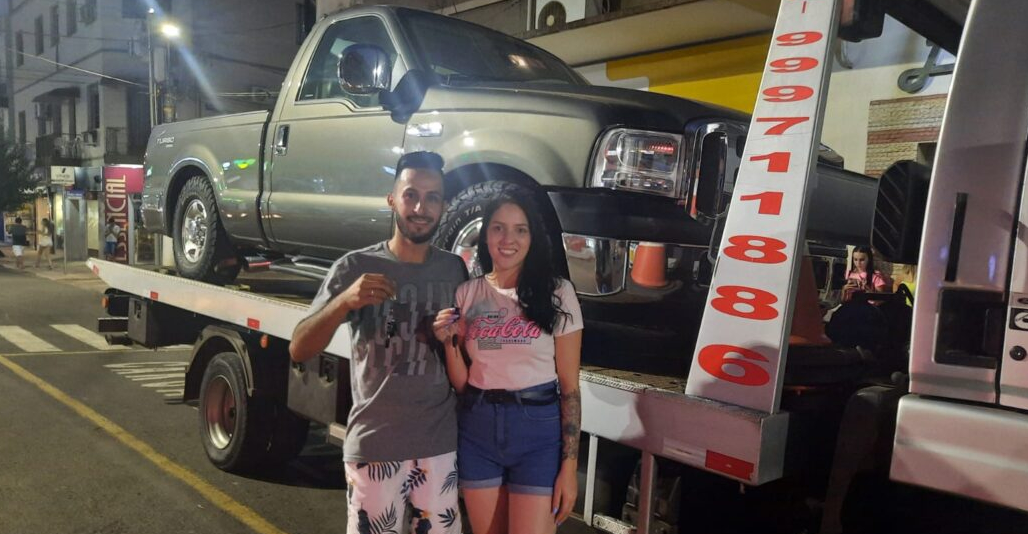 Bruna Freitas e Huelitom Cassuba, residentes em Capinzal, foram os contemplados do sorteio virtual realizado no Instagram. Com a participação ativa nas rifas online, eles adquiriram 126 números por aproximadamente R$ 100 e agora celebram a sorte que lhes rendeu duas caminhonetes FORD F250, avaliadas em cerca de R$ 140 mil cada.