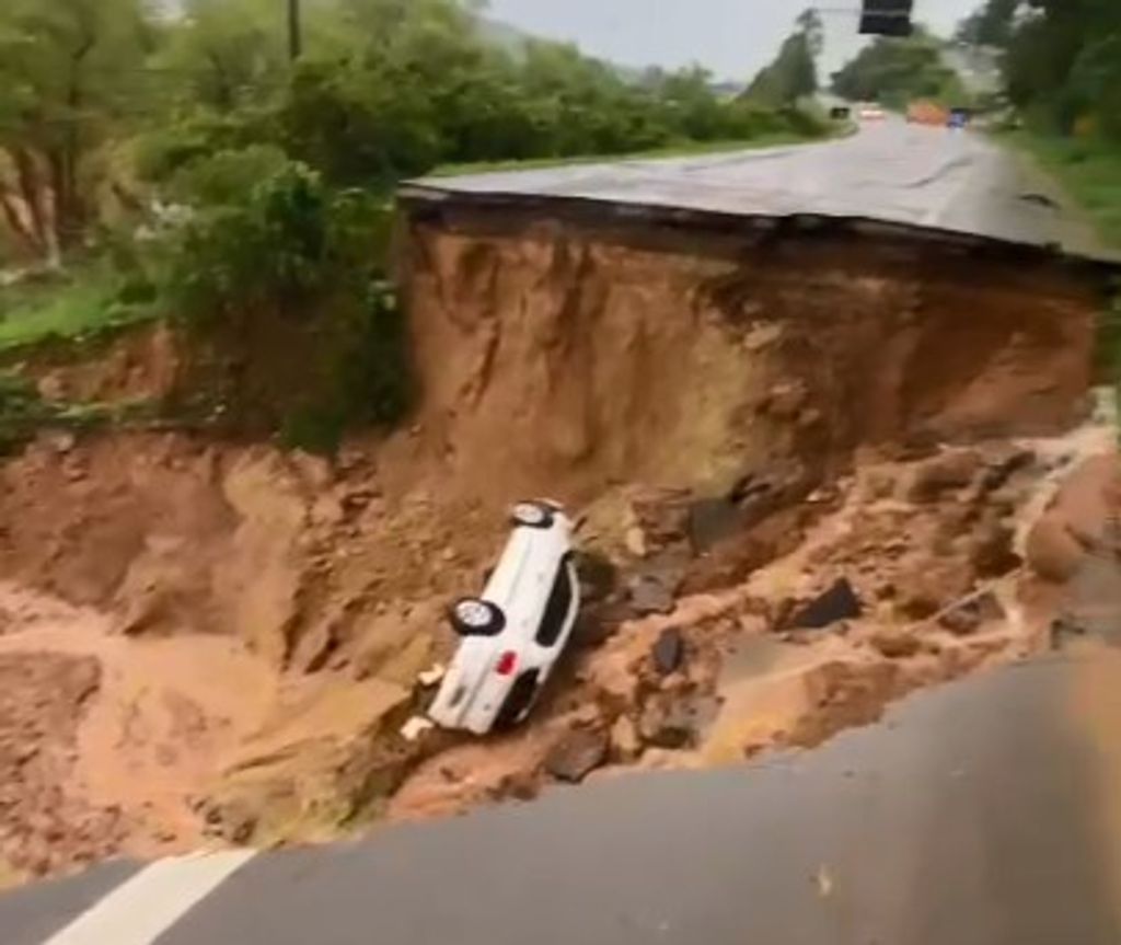 Uma cratera se abriu por conta das fortes chuvas e interditou a BR-470 em Rio do Sul. O fato aconteceu durante a madrugada desta quarta-feira (14) e não há previsão para liberação do tráfego.