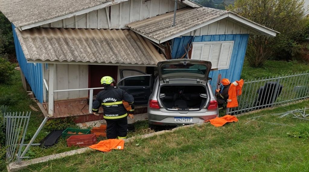 Um automóvel Gol saiu da pista e invadiu uma casa, por volta de 16h50 desta segunda-feira, 26, no bairro Gioppo, em Caçador, no Meio-Oeste catarinense. Segundo informações de populares, a condutor saiu de sua casa e em seguida foram ouvidos barulhos do acidente.