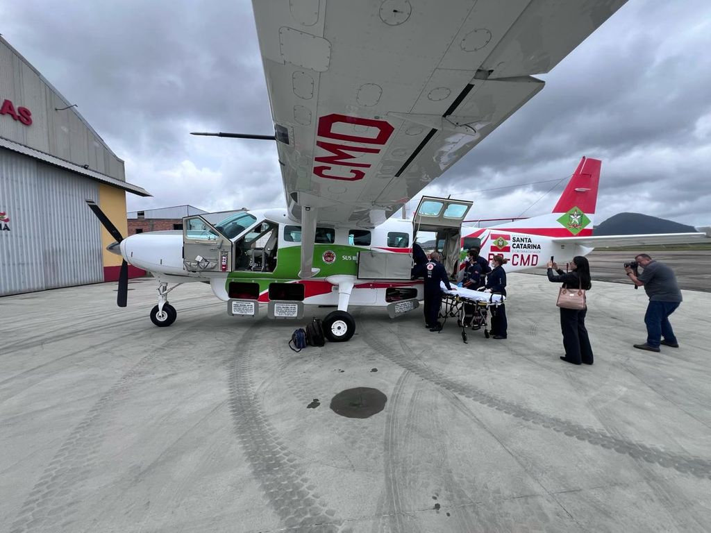 O Batalhão de Operações Aéreas do Corpo de Bombeiros Militar de Santa Catarina (BOA / CBMSC), em parceria com o SAMU Aeromédico (SES / SAMU), realizou nesta segunda-feira, 15/04, o primeiro transporte aeromédico com a nova aeronave de asa fixa Arcanjo-04, a qual está baseada em Joaçaba.