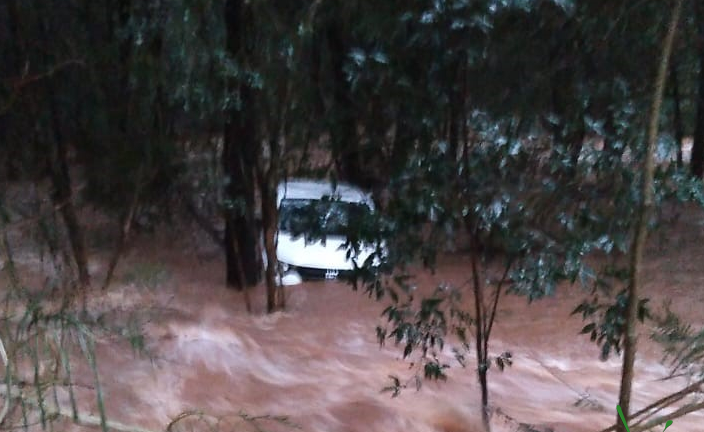 Ao passar por uma ponte, o carro foi arrastado pela correnteza e caiu no rio, causando perda total. Os dois homens foram resgatados por moradores das proximidades e permaneceram no local até a chegada da PM.